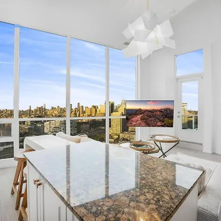 Penthouse Corner Suite with Panoramic 12 FT Windows offers views of the city and includes comforts like air conditioning, as well as a flat-screen TV with satellite channels. For added convenience, a hot tub are available at the accommodation. You'll also come across a hairdryer and bath sheets.